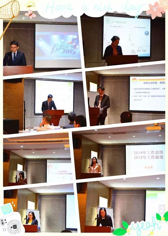 緊接著,陳總經(jīng)理對2014年工作作了整體回顧和總結,同時對公司各部門在2014年工作中取得的成績給予了肯定,對公司在2015年的發(fā)展前景和目標進行了整體規(guī)劃,號召全體員工全力以赴,實現(xiàn)新一輪的業(yè)績提升。