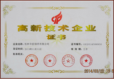 桂林華信制藥高新技術企業證書